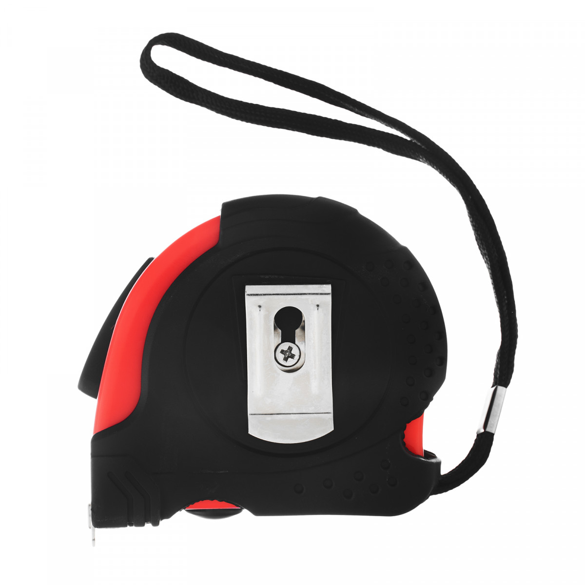 - Дополнительные возможности — шнурок для крепления на запястье уменьшает риск падения рулетки, на боковой поверхности имеется зажим для фиксации рулетки на поясном ремне.