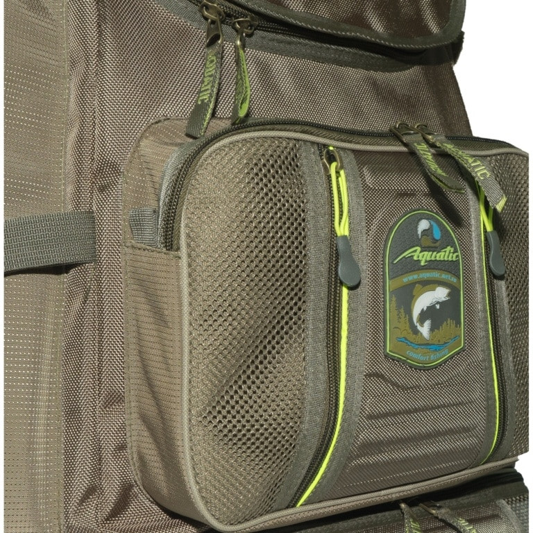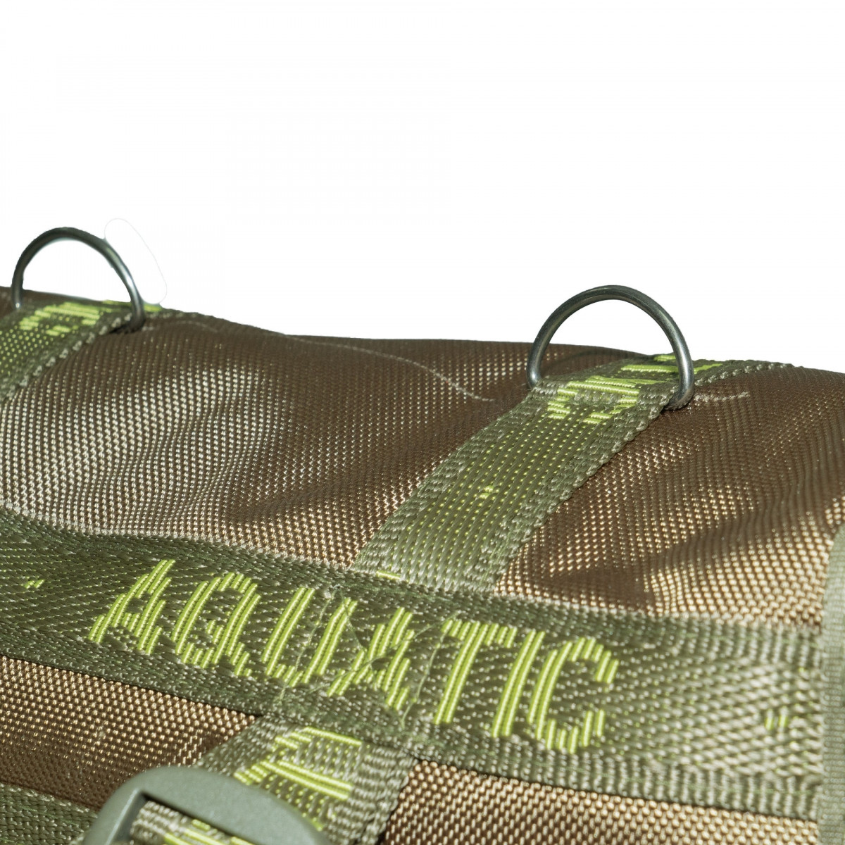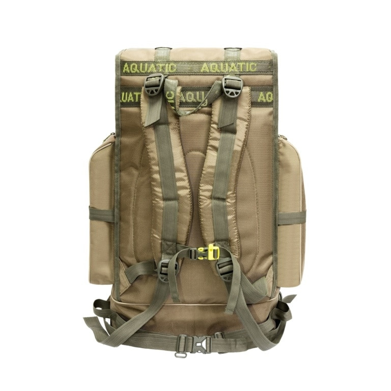 Рыболовный рюкзак Aquatic среднего размера объемом 50 литров изготавливается из непромокаемых нейлоновых материалов. Рюкзак имеет нижнее изолированное вентилируемое отделение и 5 дополнительных карманов с возможность закрепления дополнительных вещей снаружи. Уплотнённая основа и комфортная подвеска с грудной регулировкой дают возможность очень широкого применения.