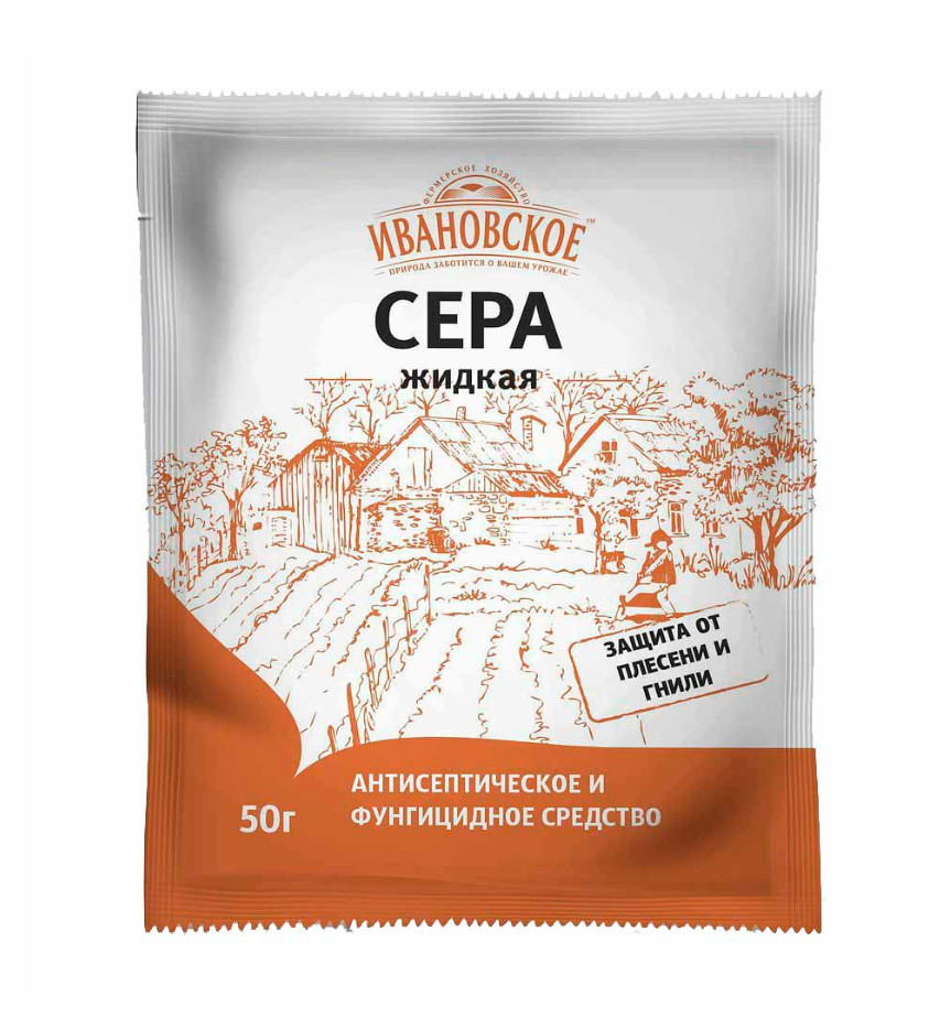Сера жидкая (ВСК) фунгицидное средство с антисептическим эффектом в форме водно-суспензионного концентрата для обработки от грибковой плесени, гнилостных грибков и бактериальных поражений.