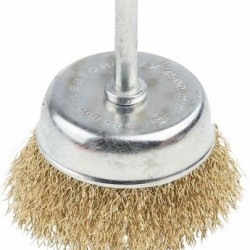 Щетка 65 мм для дрели "чашка" со шпилькой латунированная витая проволока MATRIX