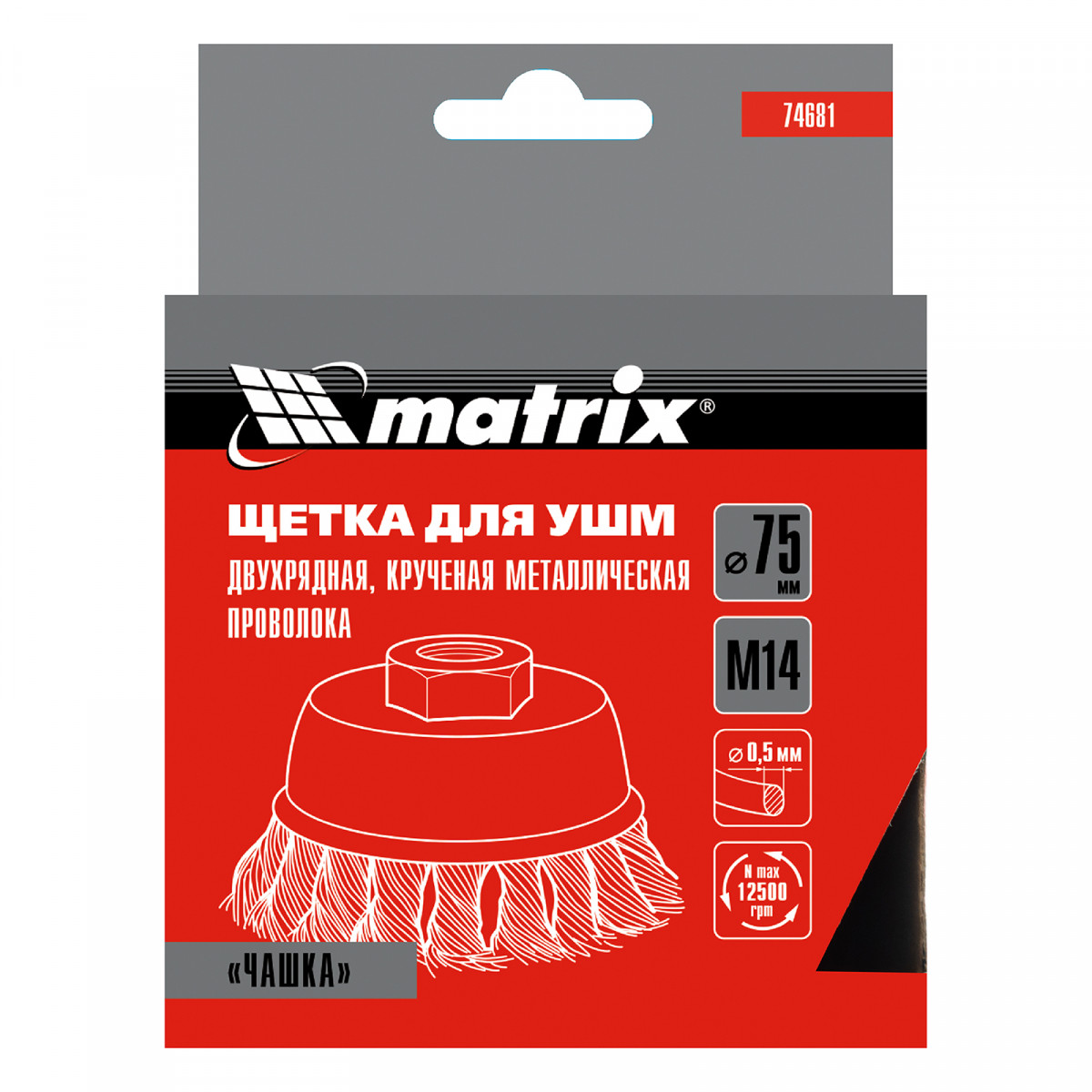 Щетка для УШМ, 75 мм, М14, "чашка", двухрядная, крученая проволока 0.5 мм Matrix