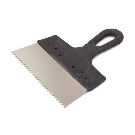 Пластмассовая ручка.Используется для нанесения клеевых и штукатурных растворов на отделываемую поверхность Размер зуба: 4x4 mm.