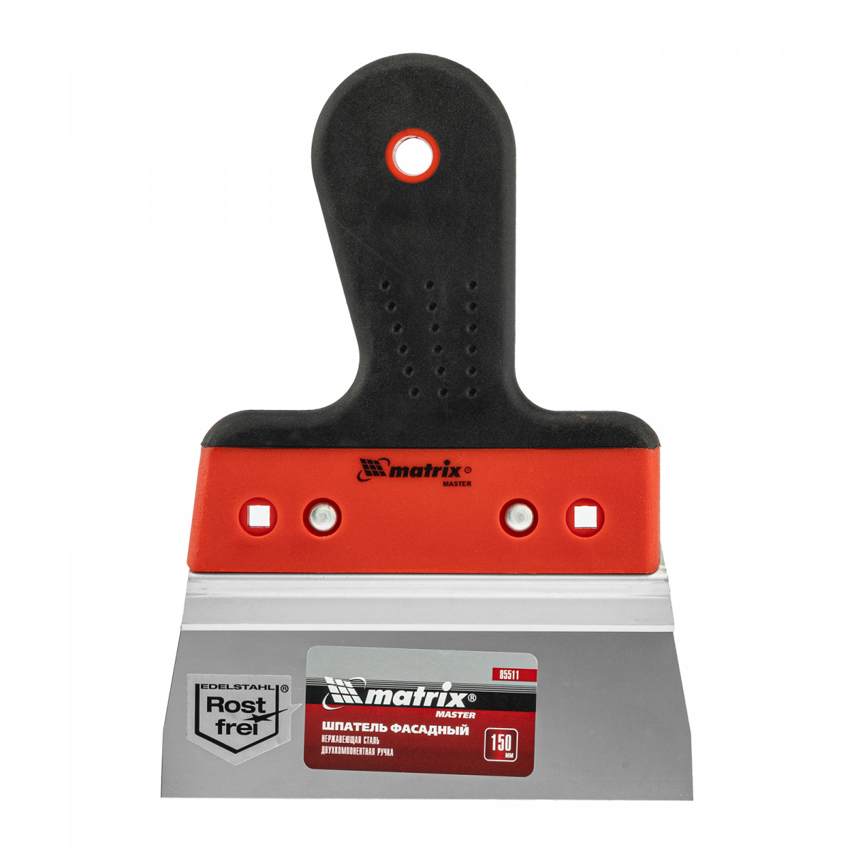 Шпатель фасадный из нержавеющей стали, 150 мм, узкое полотно, двухкомпонентная ручка Matrix