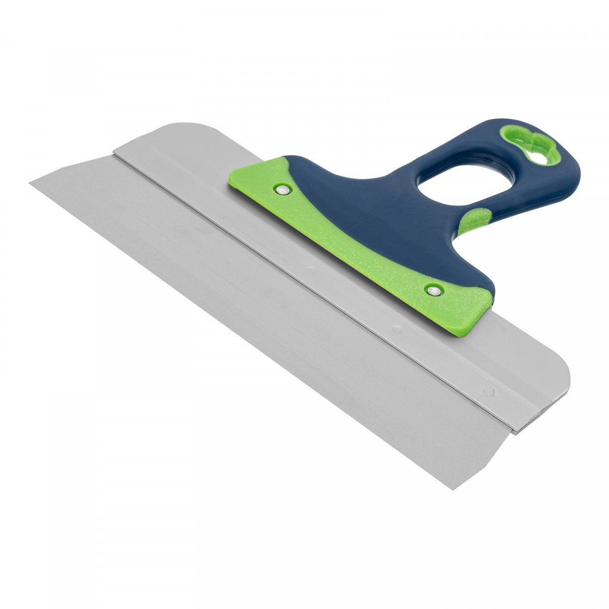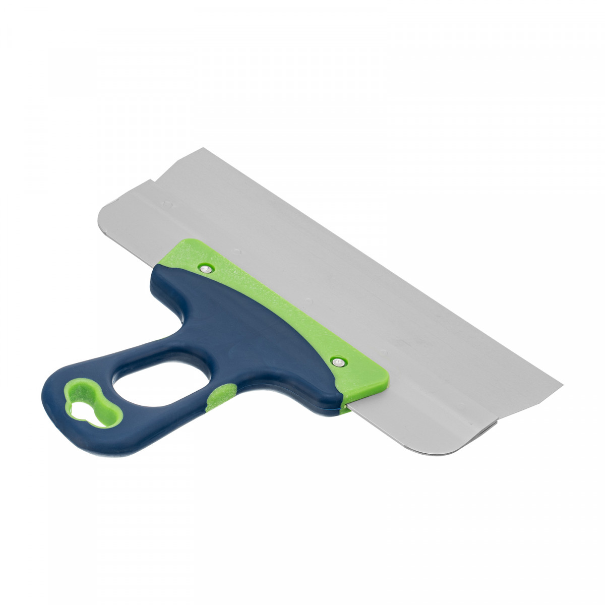 Фасадный шпатель Сибртех 85574 с рабочим полотном шириной 250 мм из нержавеющей стали и 2-компонентной рукояткой предназначен для нанесения, выравнивания и сглаживания отделочных составов, а также проведения других ремонтно-отделочных работ. Инструмент оптимально подходит для заглаживания зашпаклеванных швов.