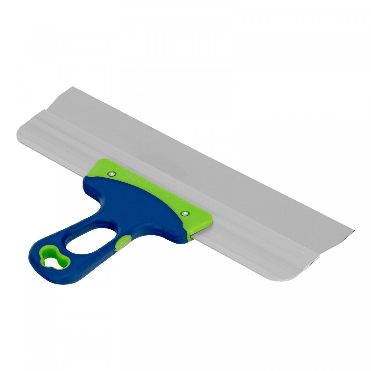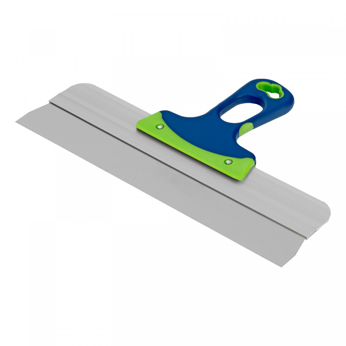 Фасадный шпатель Сибртех 85576 с рабочим полотном из нержавеющей стали шириной 350 мм и двухкомпонентной рукояткой предназначен для нанесения, выравнивания и сглаживания отделочных составов, а также проведения других ремонтно-отделочных работ. Оптимален для заглаживания зашпаклеванных швов.