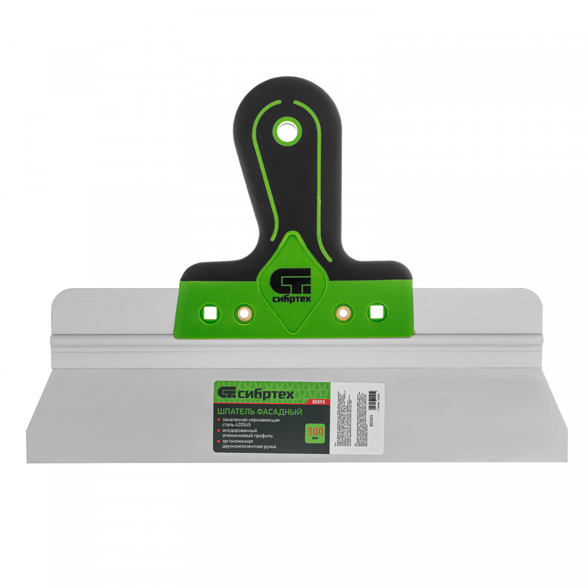 Шпатель фасадный с двухкомпонентной полимерной ручкой Сибртех 85593 — это надежный и эффективный инструмент, выполненный из нержавеющей стали 420S45. Предназначен для профессионального выравнивания поверхностей. Благодаря прочности и качественному исполнению обладает высокой производительностью и долгим сроком службы.