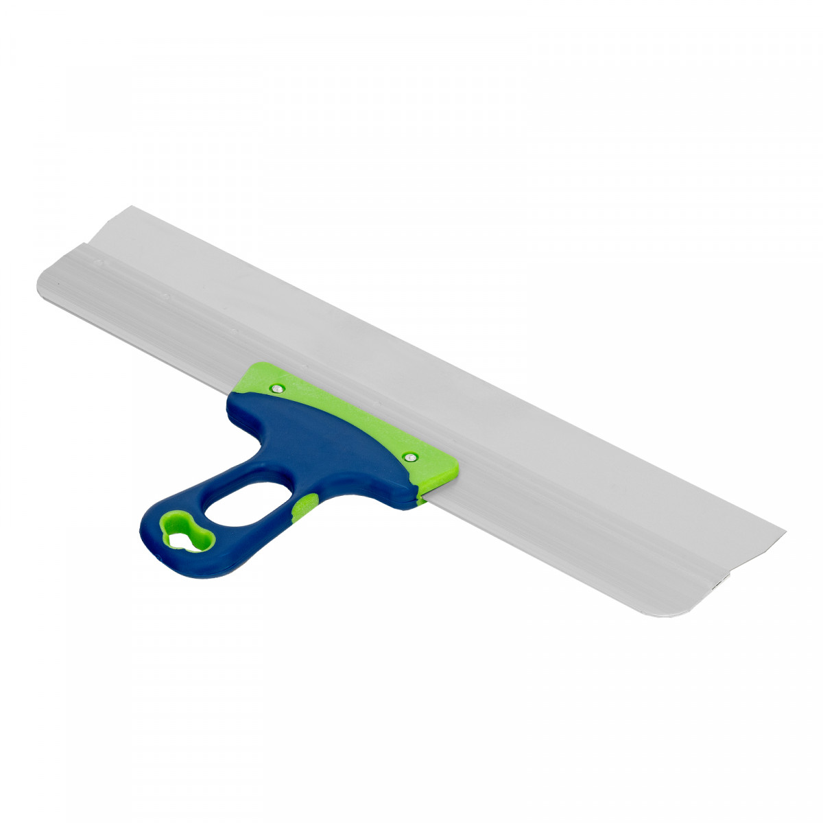 Фасадный шпатель Сибртех 85577 с рабочим полотном из нержавеющей стали шириной 450 мм и двухкомпонентной рукояткой, предназначен для нанесения, выравнивания и разглаживания отделочных составов, а также проведения других ремонтно-отделочных работ. Оптимален для заглаживания зашпаклеванных швов.