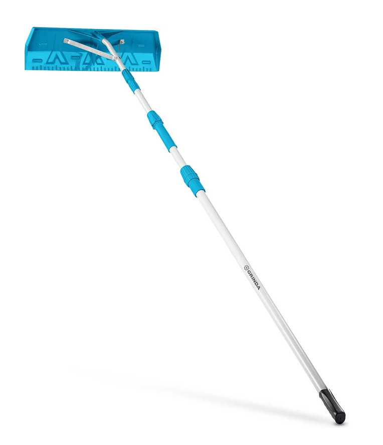 Четырехсоставная алюминиевая ручка раздвигающуюся от 1,9 м до 5,8 м позволяет безопасно осуществлять очистку крыш, не используя лестниц.