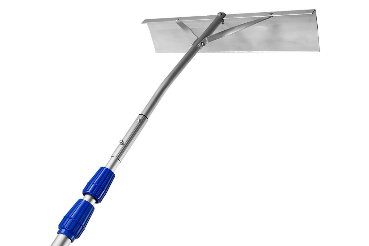 Скребок для удаления снега с крыши TRUPER ROOF-RK 33901 представляет собой удобное приспособление с телескопической рукояткой. Инструмент позволяет скидывать снег с крыши. Материал скребка - алюминий. Телескопическая рукоятка обладает максимальной длиной до 5 метров.
