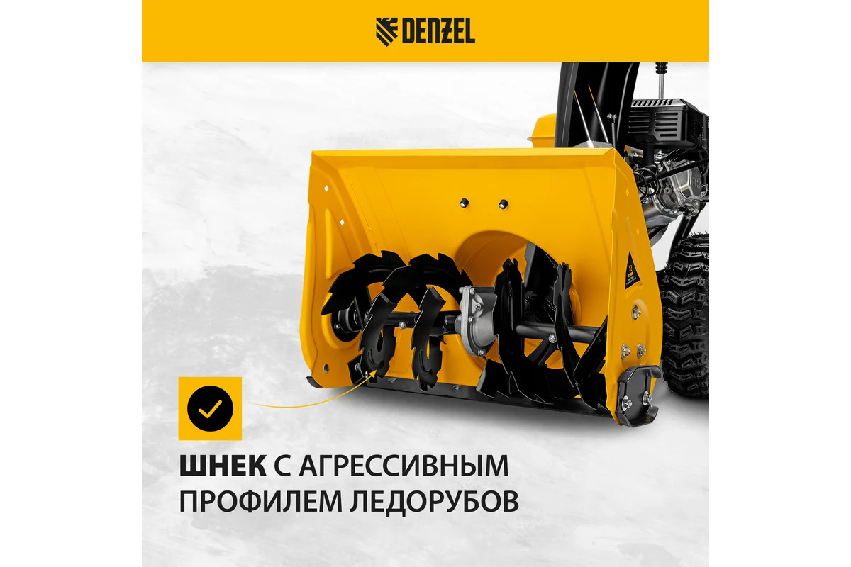 Благодаря ресурсному двигателю объемом 212 куб.см с высоким крутящим моментом снегоуборщик Denzel SB 560 эффективно убирает снег.