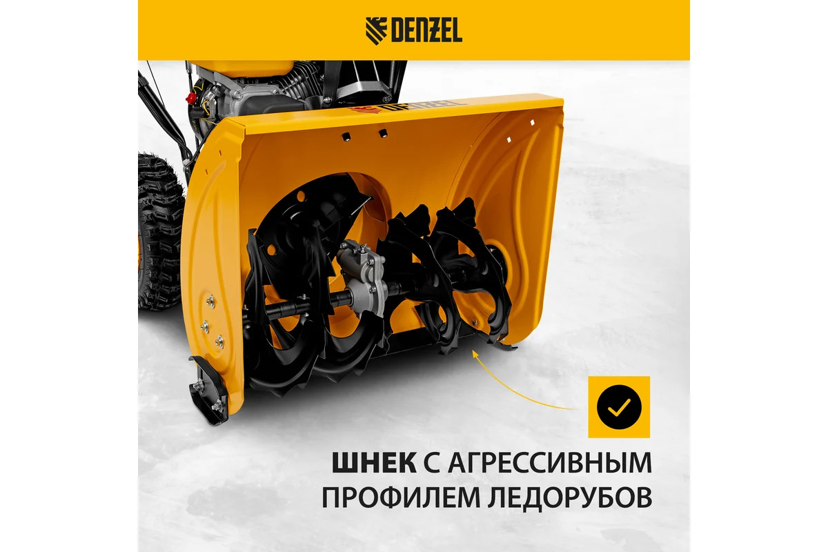 Бензиновая снегоуборочная машина Denzel SBM 610 97653 - оптимальный выбор для коммунальных служб и организаций. Предназначена для уборки территорий загородных домов, коттеджей, подъездных дорог и улиц СНТ, парковок и городских дворовых территорий. Ресурсный двигатель объемом 212 куб.см с высоким крутящим моментом, кожух шнека шириной 610 мм и высотой захвата 540 мм обеспечивают эффективную уборку больших сугробов с ледяной коркой. Снегоуборщик относится к самоходному типу с двухступенчатой системой забора снега. Яркая LED фара облегчает работу в темное время суток. Благодаря шинам с глубоким протектором исключается пробуксовка на обледенелой дороге.