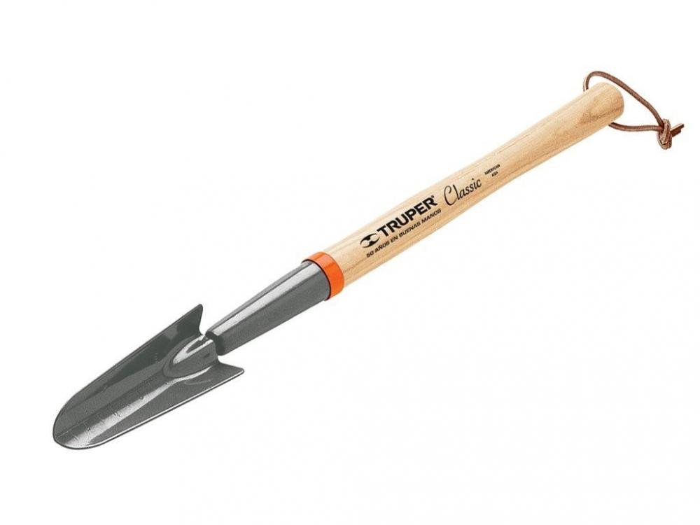 Садовый совок Truper 15034 имеет узкое лезвие, что делает его удобным для посадочных работ на маленьких клумбах или грядках. Инструмент состоит из деревянного черенка и стальной рабочей части с длинным воротником для надежного крепления ручки. Совок садовый узкий 15034, покрытие от налипания грунта ANTI-STICK, сталь SAE 1035, длина 38см.