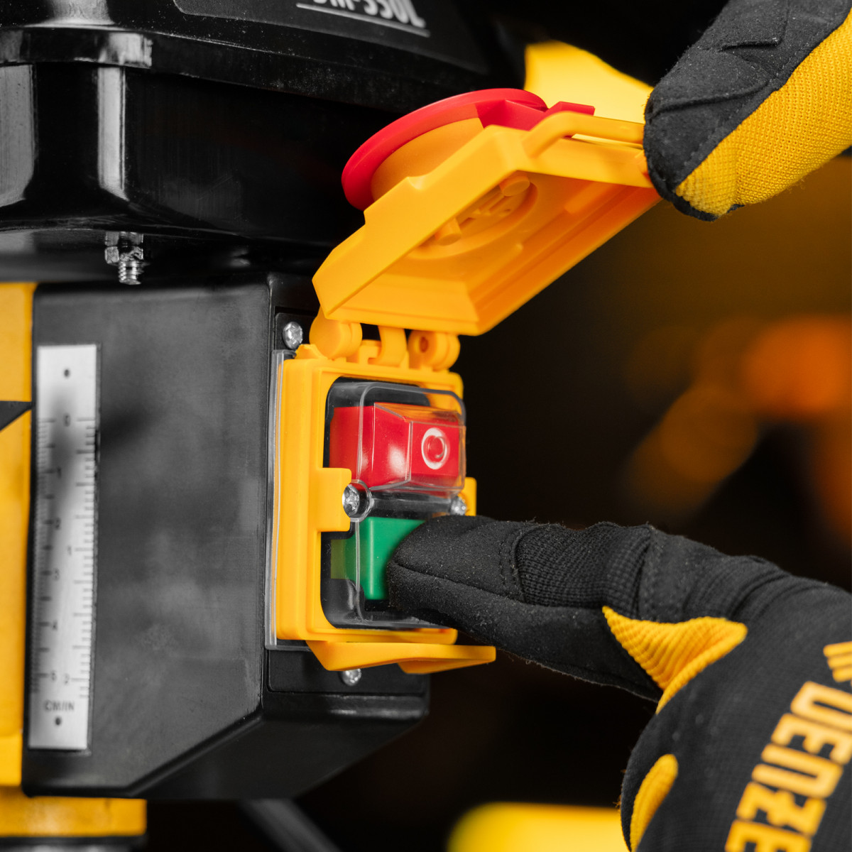 • Продуманная конструкция — надежный электромагнитный выключатель с кнопкой аварийной остановки позволяет мгновенно прекратить работу при необходимости.