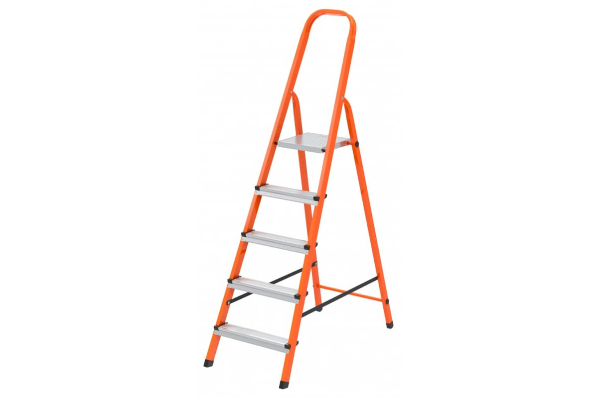 Стремянка стальной профиль 5 ступеней оранжевая СИБРТЕХ