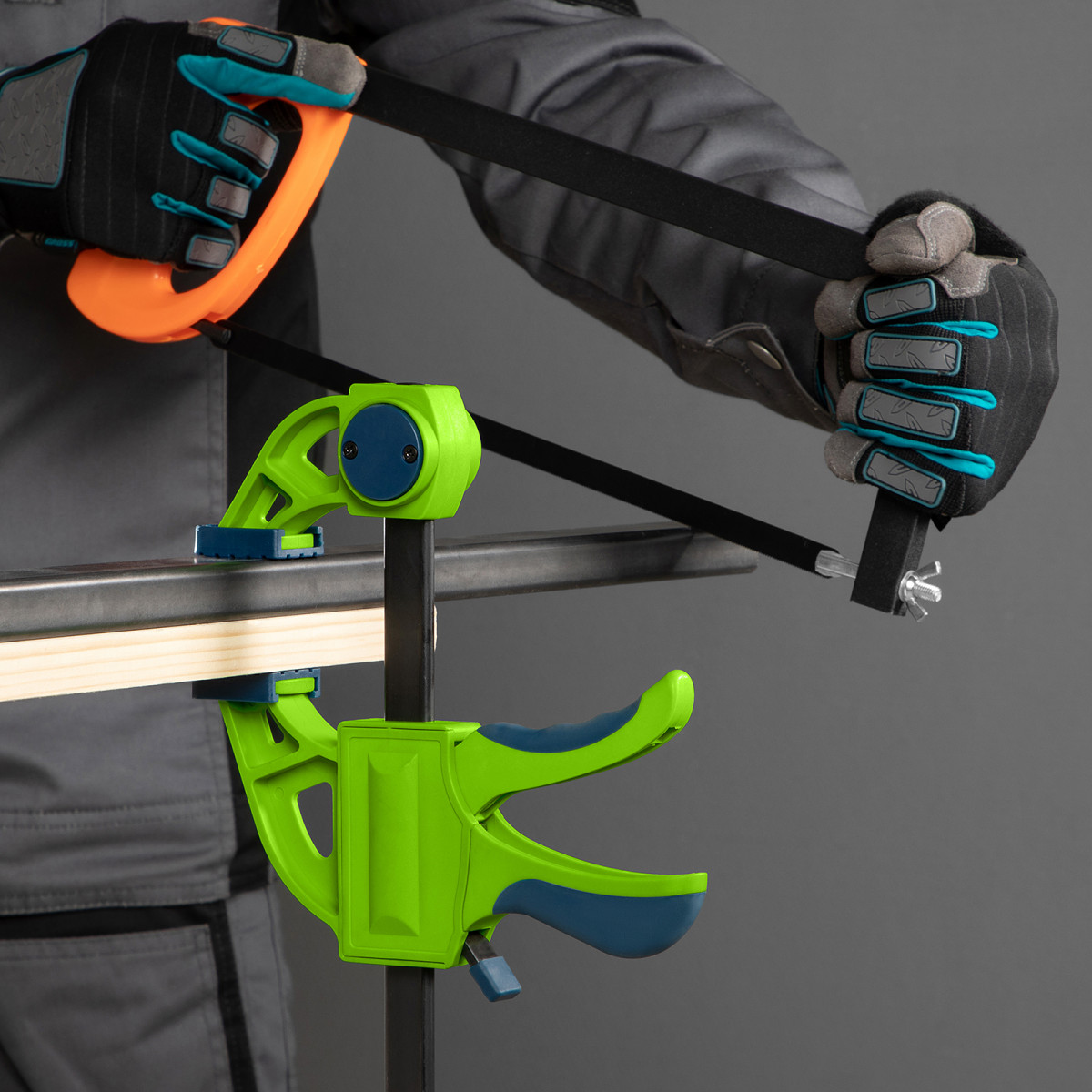 Струбцина F-образная, быстрозажимная, 150 х 70 х 360 мм, пластиковый корпус, фиксатор, двухкомпонентная рукоятка Сибртех
