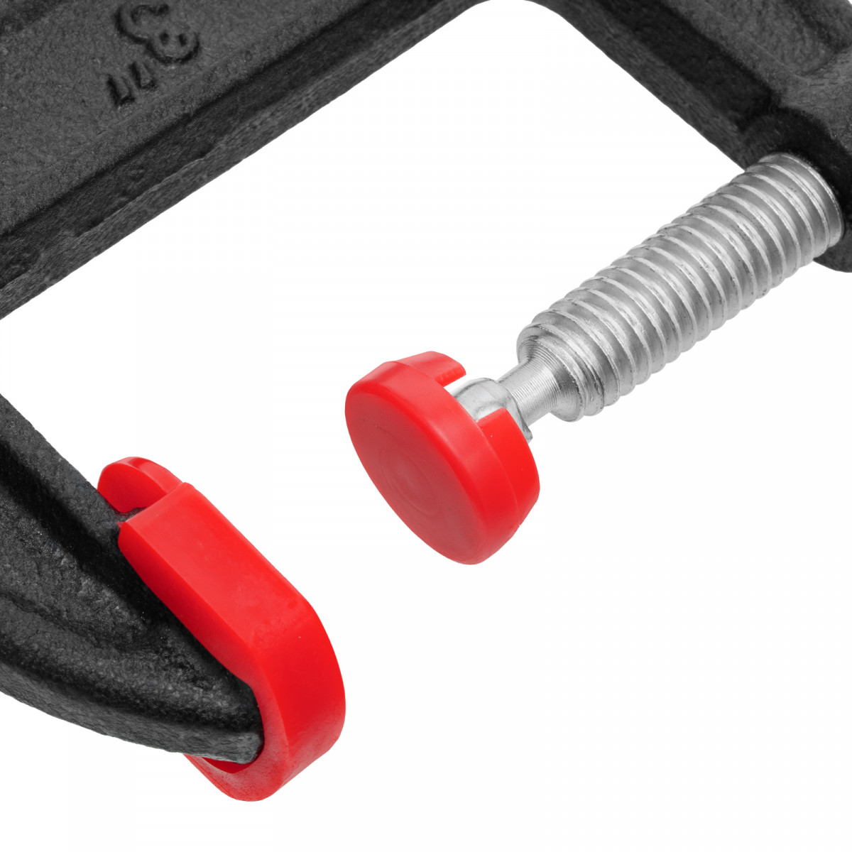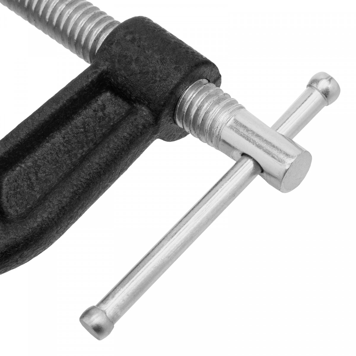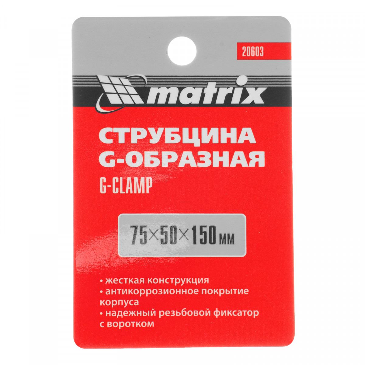 Струбцина G-образная Matrix 20603 с максимальной шириной зажима 75 мм используется для фиксации заготовок или закрепления их на верстаке или станке. Позволяет склеивать детали, а также сверлить их, шлифовать, опиливать и проводить другие работы. Подходит для использования во время сварки. Стальной винт и рама из высокопрочного чугуна выдерживают значительные нагрузки. Винт с трапециевидной резьбой обеспечивает надежную фиксацию предметов. Струбцина применяется в слесарном и столярном деле, а также в домашнем хозяйстве.