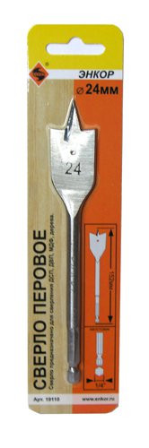 Сверло 24*152 мм. по дереву перовое "ЭНКОР"
