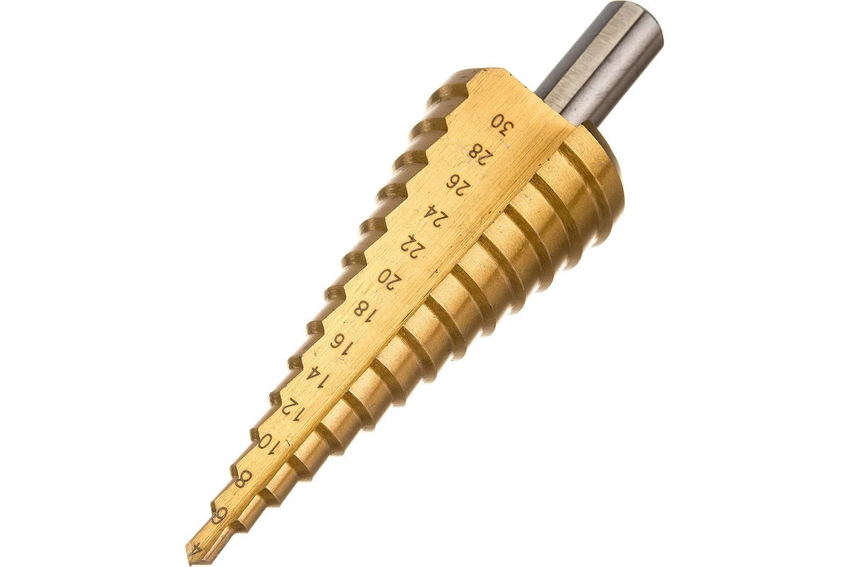 Каждая ступень сверла, образующаяся за счет плавного спирального перехода, имеет свой диаметр, что позволяет контролировать процесс и легко выдерживать необходимый размер отверстия.