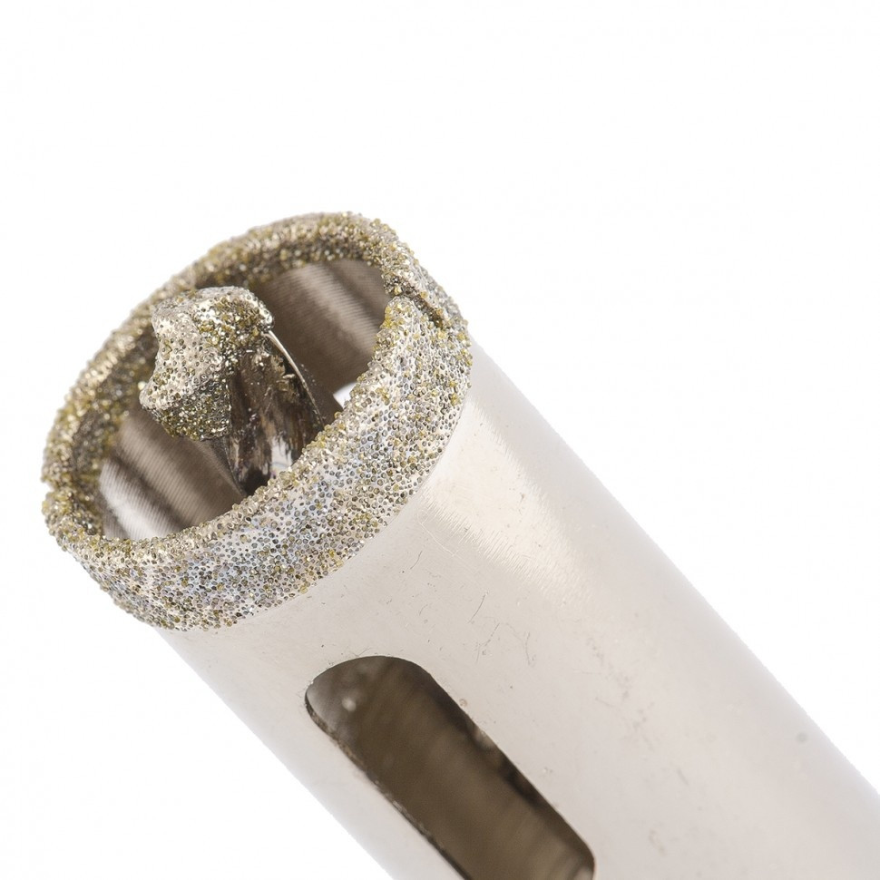Универсальное алмазное сверло по керамограниту Matrix 726163 размером 16 х 67 мм, с 3-гранным хвостовиком, применяется для получения отверстий в стекле, плитке, кафеле. За счет высокой концентрации алмазов в режущем слое оно легко справляется со сверлением керамогранита. Сверло рассчитано на профессиональное использование с дрелями и шуруповертами. Водяное охлаждение в процессе работы значительно повышает срок службы оснастки.