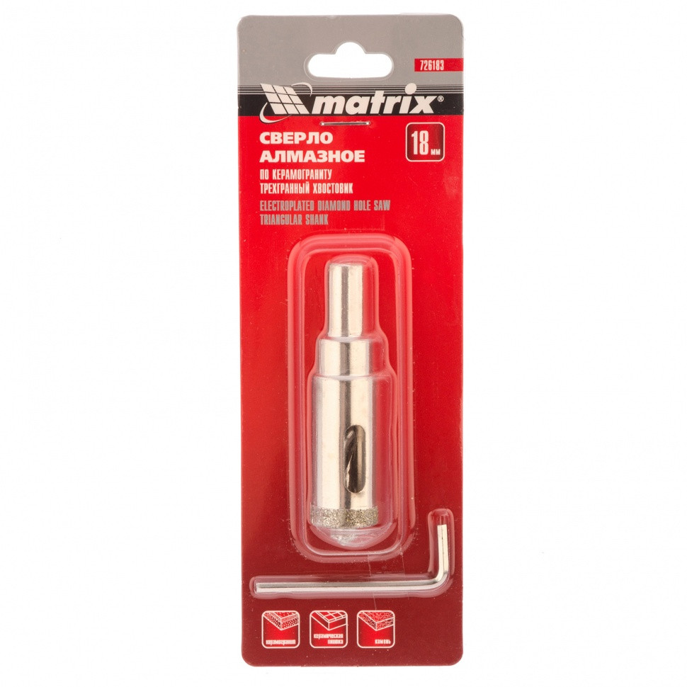 Сверло алмазное по керамограниту, 18 х 67 мм, трехгранный хвостовик Matrix
