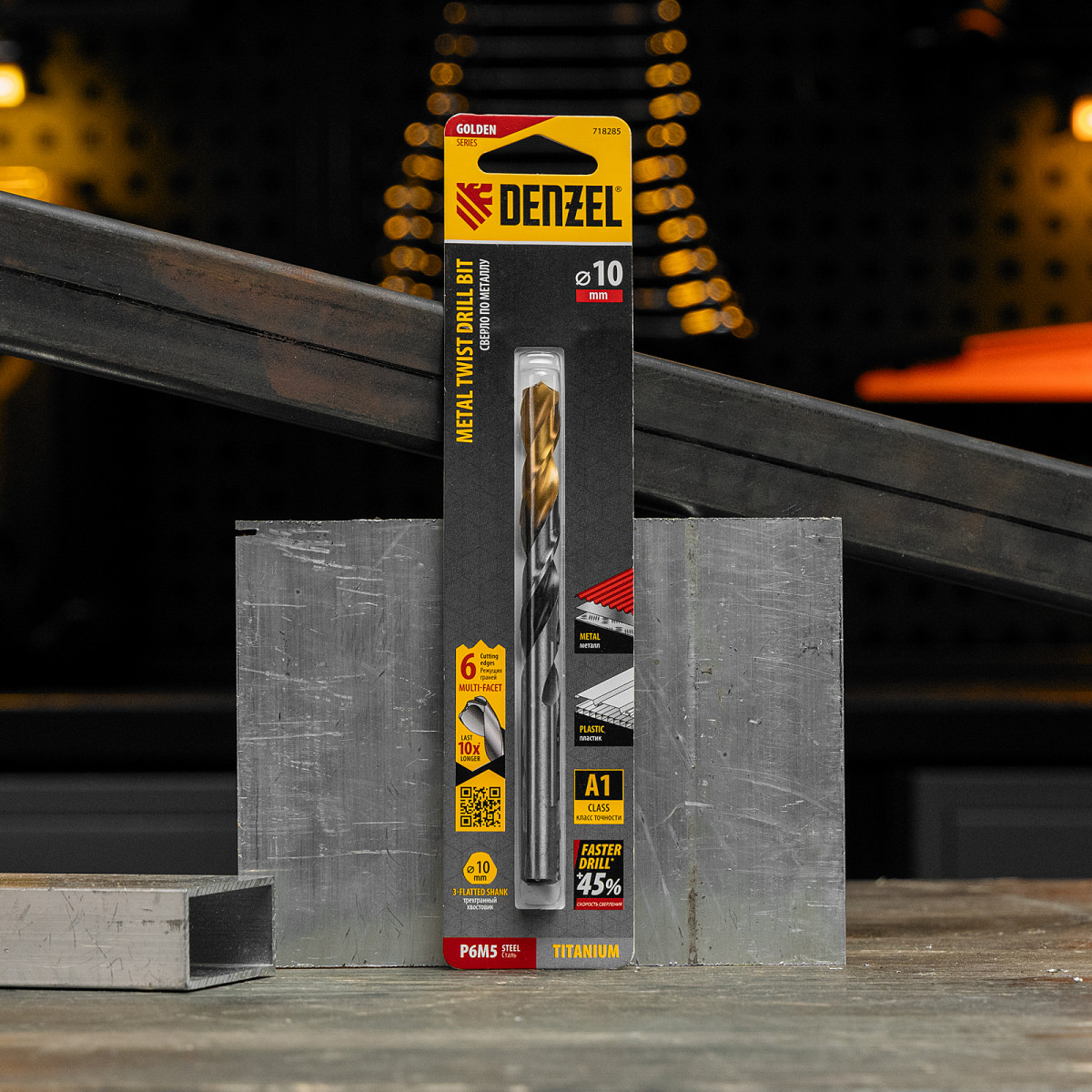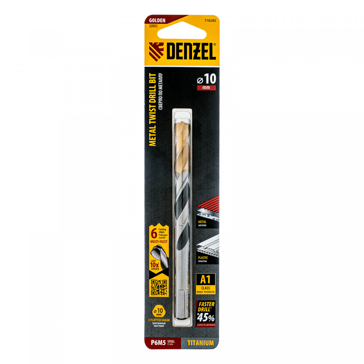 Сверло спиральное по металлу 10 x 133мм, Р6М5, Golden Tip, многогранная заточка Denzel