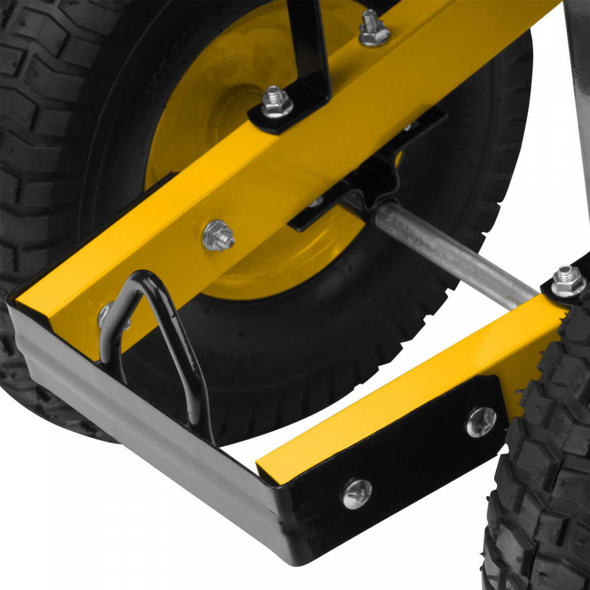 Широкие пневмоколеса с грунтозацепом предотвращают проваливание тачки в грунт.