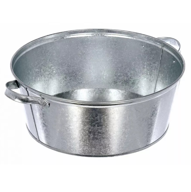 Таз круглой формы с двумя ручками по бокам предназначен для хозяйственно-бытовых целей.