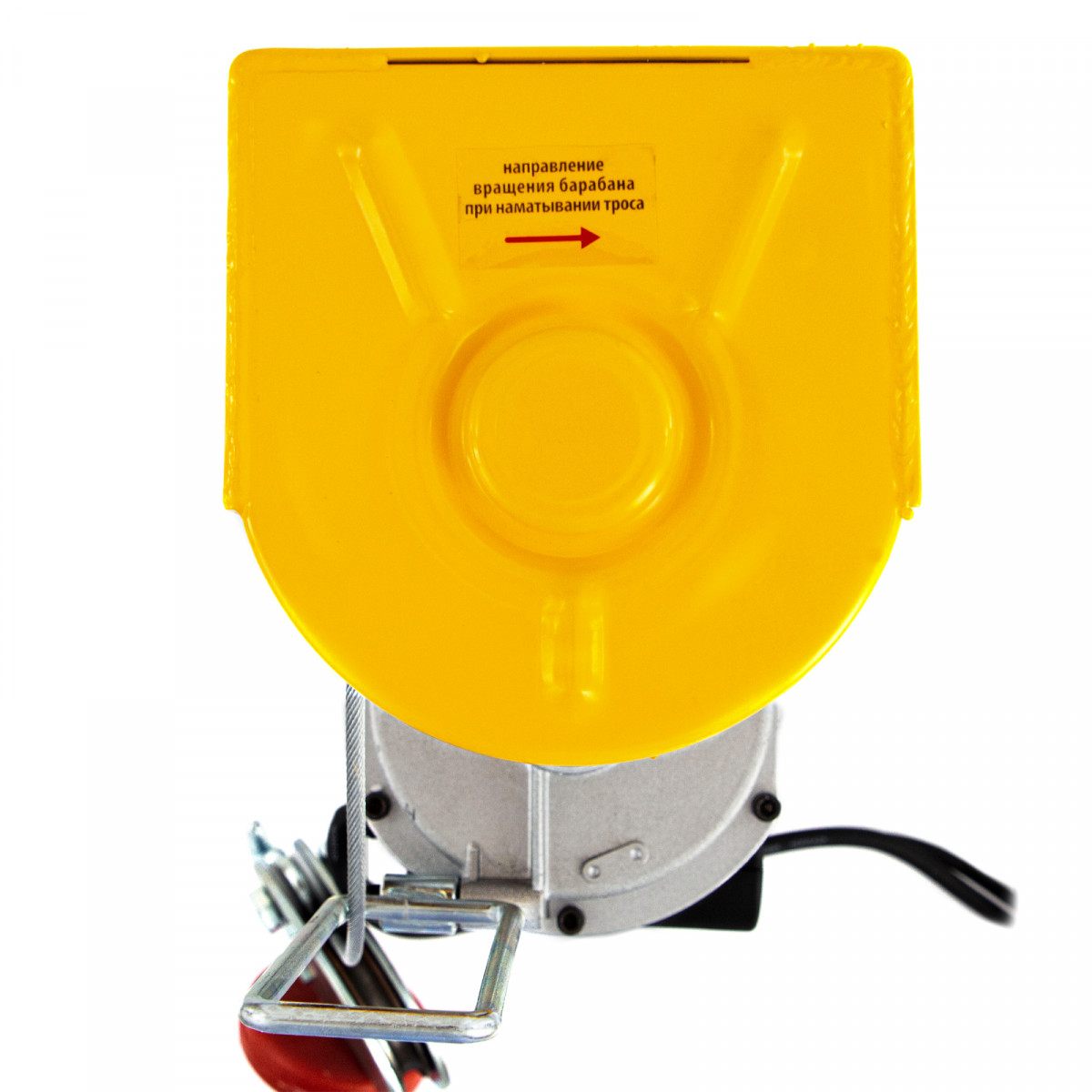Электрический тельфер Denzel TF-1200 52018 мощностью 1800 Вт способен поднимать автомобильные двигатели, строительные материалы и другие грузы массой до 0,6 т напрямую и до 1,2 т с помощью блока полиспаста. Высота подъема составляет 6 м при использовании полиспаста и 12 м без него, скорость — 4 и 8 м/мин соответственно. Устройство пригодится в гараже, автомастерской или на строительной площадке. Полиспаст входит в комплект поставки.