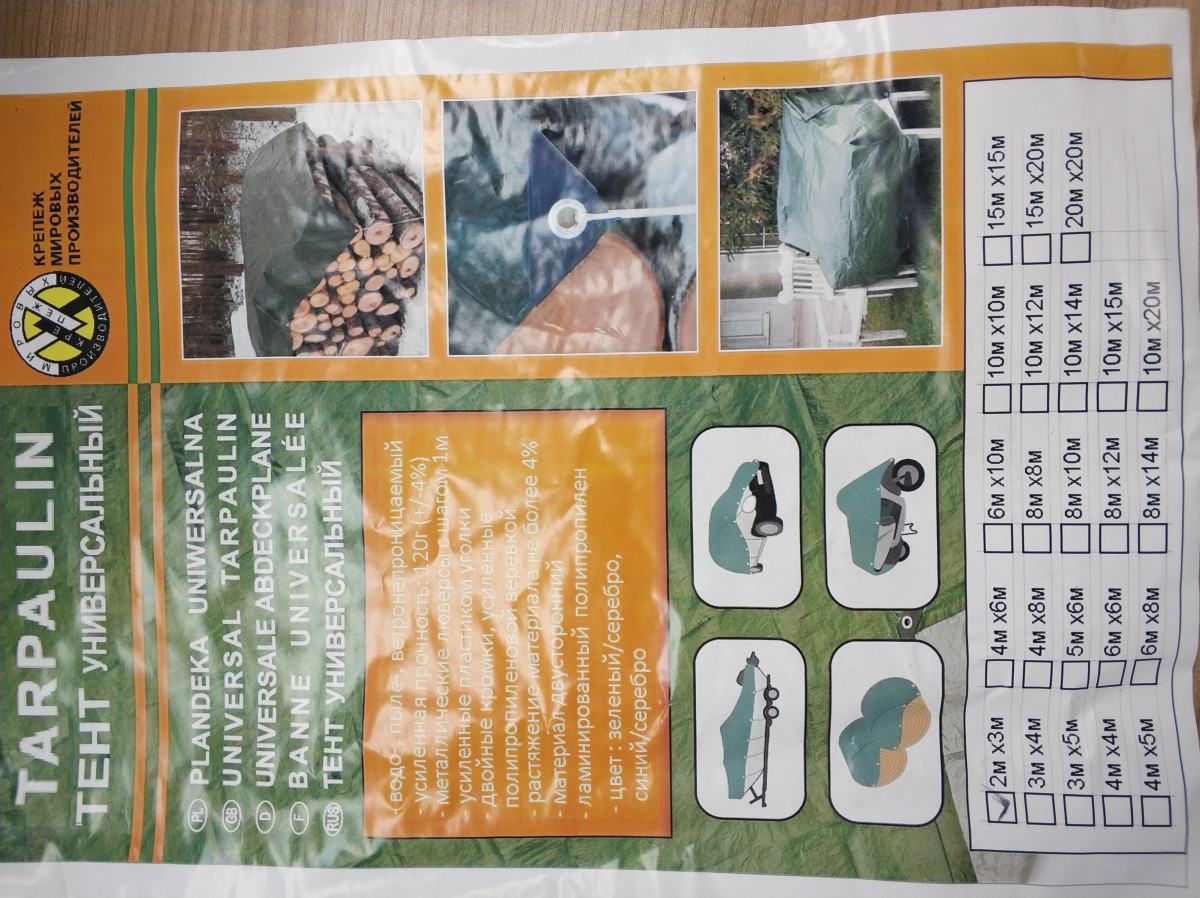 Тент 2 x 3м (120г/кв.м.) зеленый/серебро
