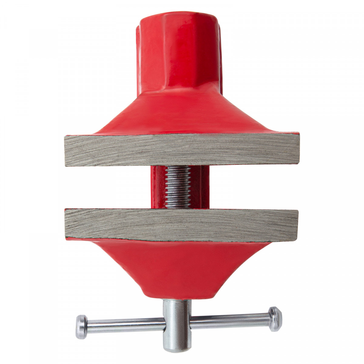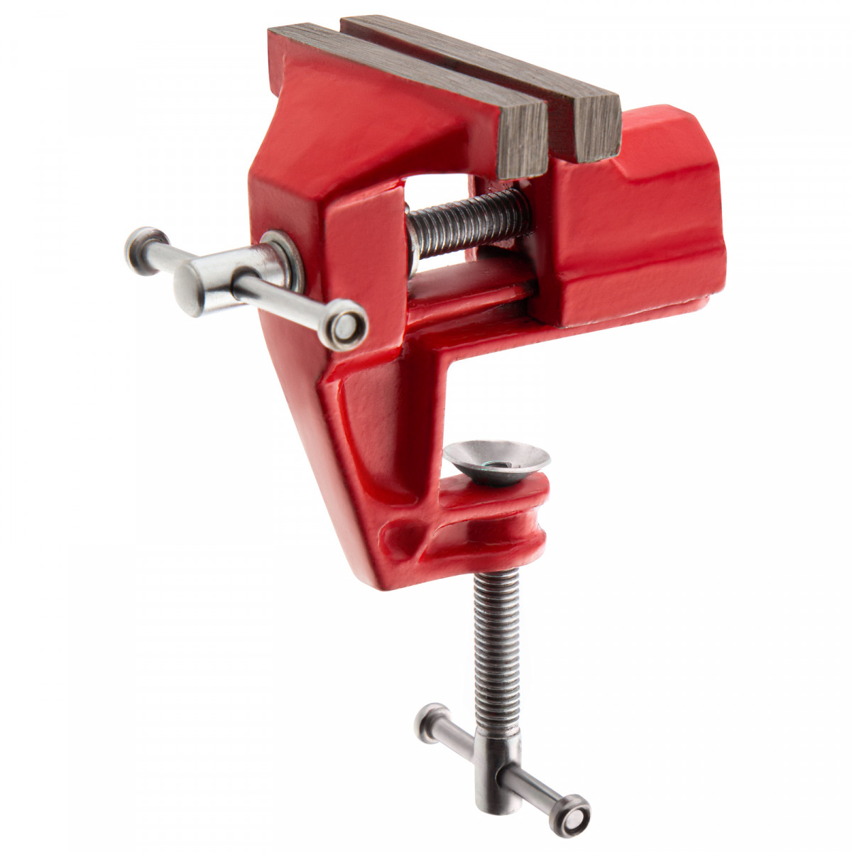 - Простое использование — винтовой зажимной механизм позволяет легко устанавливать и снимать тиски с рабочего стола.