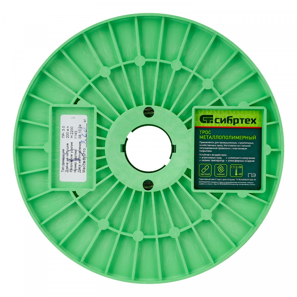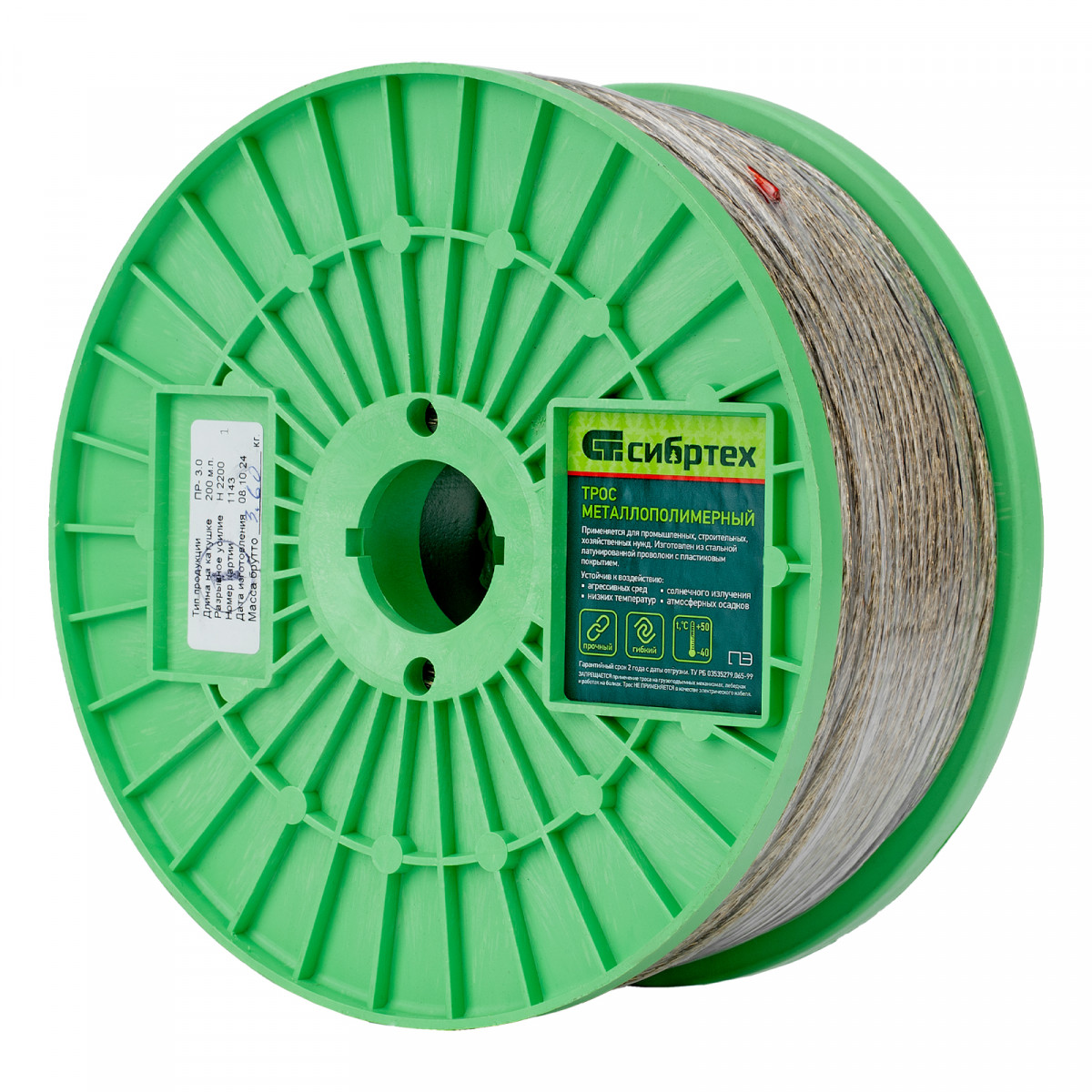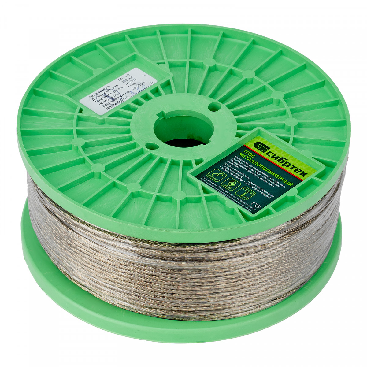 Металлополимерный прозрачный трос ПР-3.0 Сибртех 47628 толщиной 3 мм, 200 м. п. на катушке, используется для монтажа рекламных баннеров, установки ограждений, палаток, теплиц, погружения скважинных насосов и датчиков. Применяется в качестве садового троса-шнура для подвязки растений, а также может служить для развешивания белья. Жила шнура изготовлена из стальной проволоки, поэтому он выдерживает значительные нагрузки.