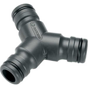 Тройник Gardena 02934-26.000.00 предназначен для соединения одновременно трех шлангов, позволяя таким образом значительно увеличить площадь поливаемой почвы, разделяя линию на две. Выполняет переход со шлангов диаметром 19 мм (3/4") на 13 мм (1/2"). Надежно фиксирует шланги между собой, исключая вылетание. Переходник выполнен из высокопрочного материала, что гарантирует длительный срок эксплуатации.