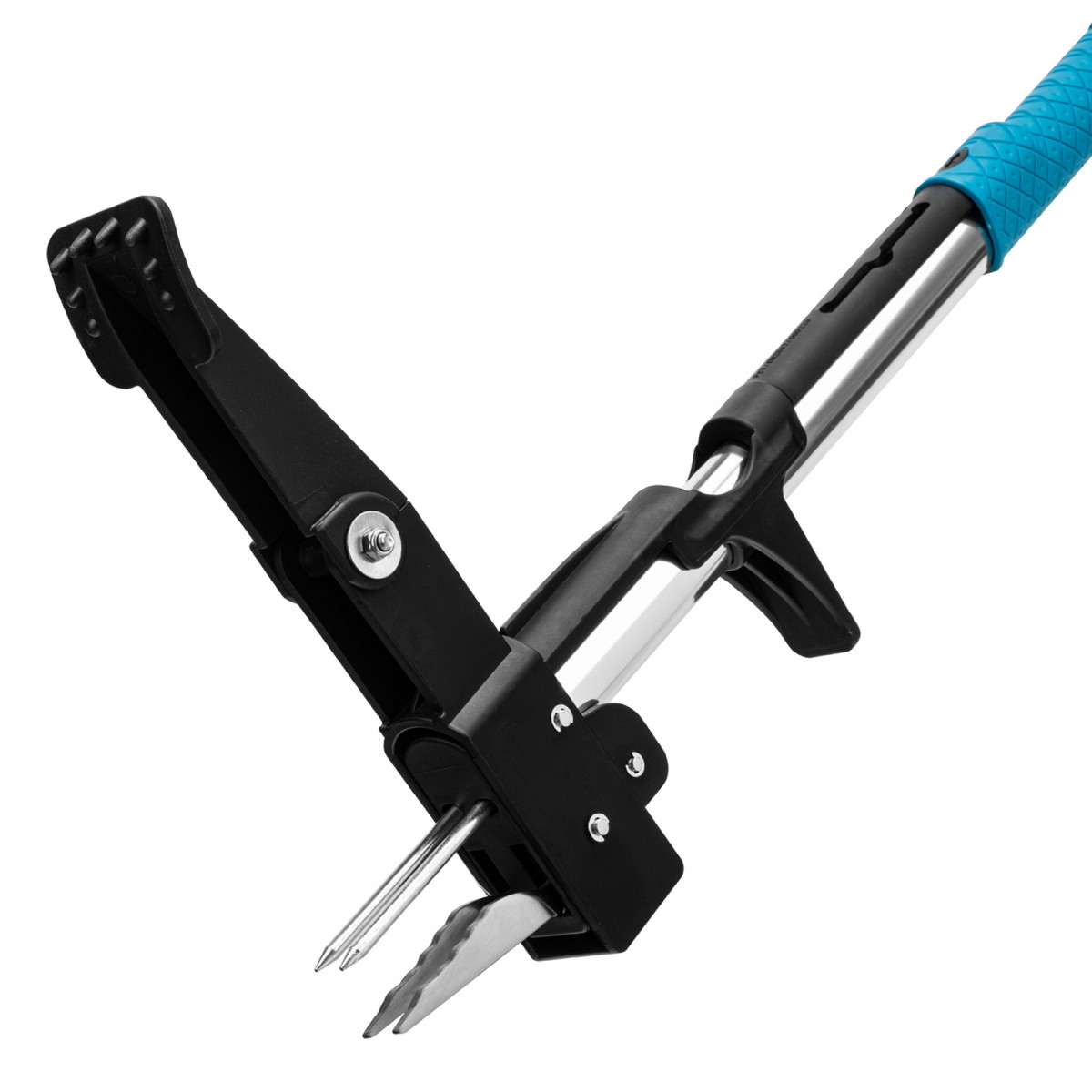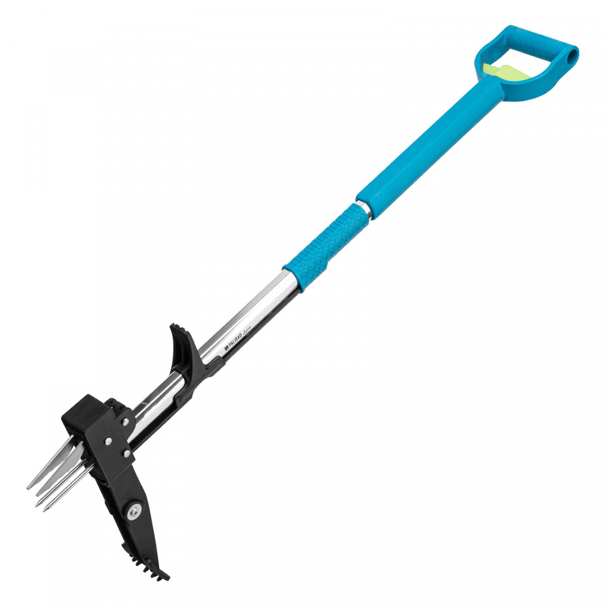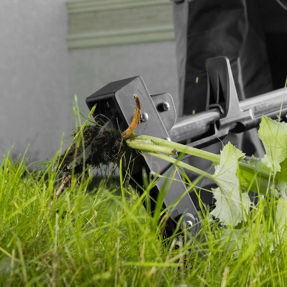 - Удобная работа — упор для ноги облегчает введение удалителя в даже в твердую почву, а благодаря педали для размыкания игл не нужно наклоняться, чтобы удалить сорняк.