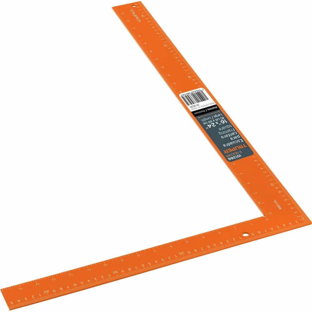 Металлический угольник Truper 41x61 см E-16x24N 101386 изготовлен из коррозионностойкого анодированного алюминия с отделкой оранжевого цвета, обеспечивающей высокую видимость и контрастность.Градация с лазерной гравировкой (метрическая и стандартная системы)