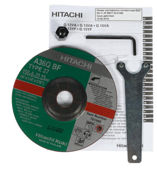 Угловая шлифовальная машина HITACHI G15VA - это мощный электроинструмент, сконструированный для шлифовки и резки различных материалов. Электронная система управления включает в себя регулировку рабочей скорости, поддержание постоянного количества оборотов, защиту от непреднамеренного пуска, а также ограничение пускового тока.