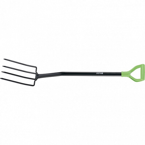 "Используемые для перекопки и рыхления почвы, уборки территории, перемещения различных материалов и даже сбора корнеплодов вилы являются универсальным садово-огородным инструментом. Рабочая часть изготовлена из среднеуглеродистой стали и покрыта порошковой эмалью для предохранения от коррозии. Стальной черенок с порошковым покрытием имеет дополнительную V-образную рукоятку."