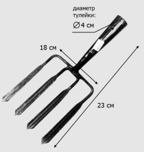 Копальные вилы также могут применяться для аэрации грунта: при прокалывании поверхности почвы формируются каналы, через которые к корням культурных растений активнее поступает воздух.Длина рогов:230мм.Ширина рогов:180мм.Назначение: копальные.Количество зубьев: 4.Материал изделия: Сталь.Диаметр прутка, мм: 10.Диаметр тулейки, мм: 40.Черенок: Нет.