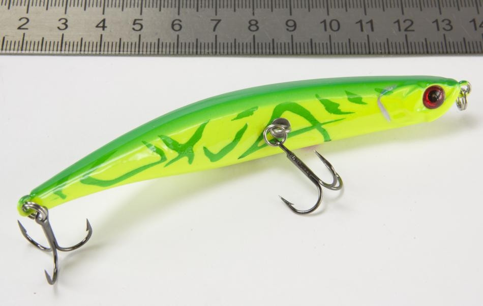 Воблер для рывковой проводки и анимации. Система огрузки расположена таким образом, что ZigZag лежит всегда на боку, плюс его стабилизирует нижний тройник. Все это создано для имитации раненой, почти умирающей рыбки, которая лежит у самой поверхности.Применение этой приманки очень оправдано, если ловля рыбы ведется в приповерхностном слое воды - например ловля щуки на меляке, покрытом травой, оставляющей лишь пару десятков сантиметров открытого для проводки пространства. Или ловля жереха с использованием бомбарды.