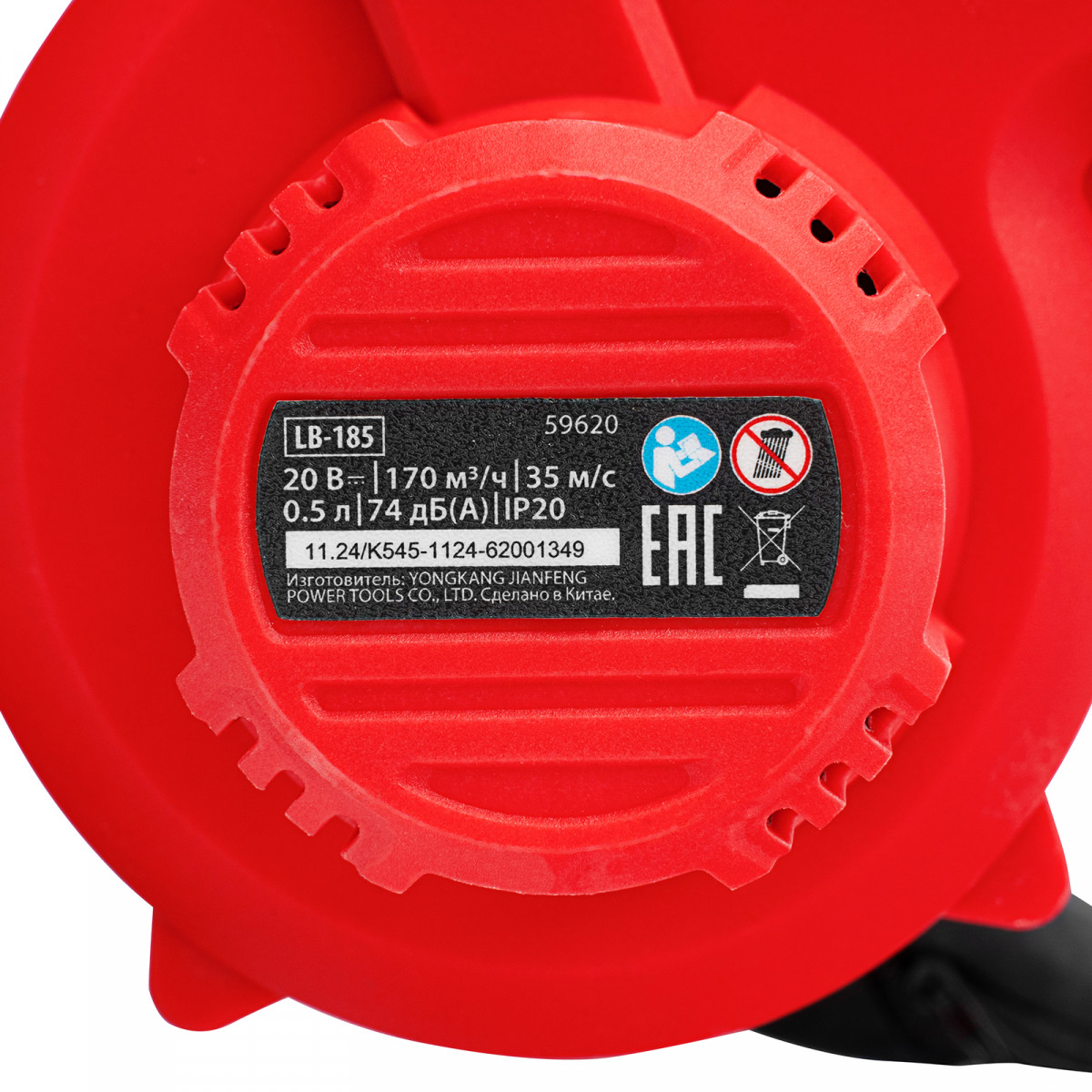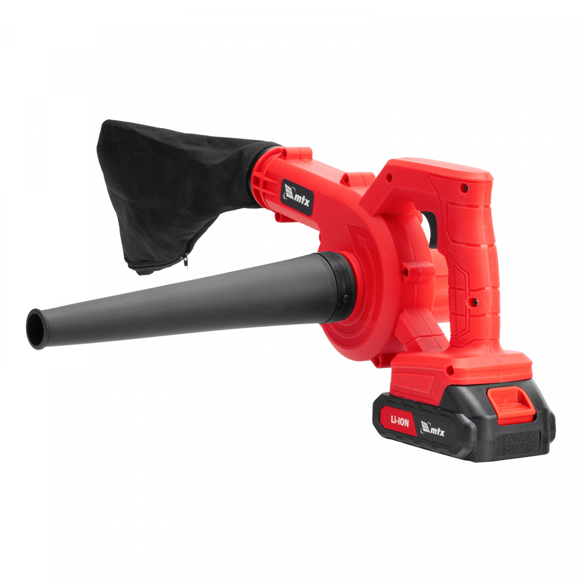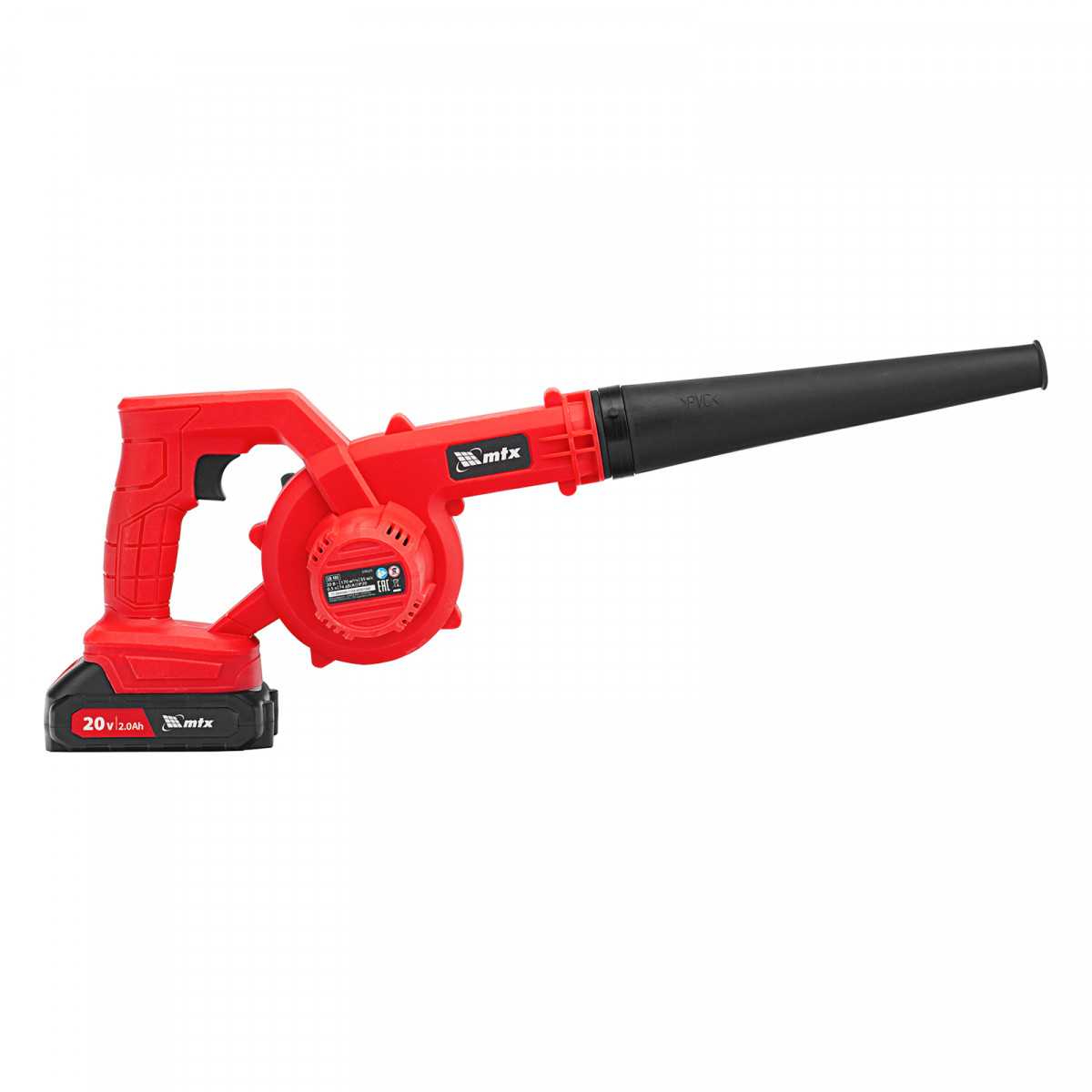 Воздуходувка-пылесос акк. портативная, LB-185, 35 м/с, 170 м3/ч, Li-Ion, 20 В MTX