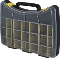 Пластиковый ящик FIT 65652 выполнен в форме кейса, служит для хранения и переноски крепежных изделий. Состоит из 22 отделений, где удобно размещаются необходимые аксессуары и различные мелочи. С помощью переставных перегородок можно регулировать размеры ячеек, чтобы максимально эффективно использовать имеющееся внутри пространство. Прозрачная крышка позволяет видеть расположение крепежа внутри. Две пластиковые защелки надежно защищают чемоданчик от непреднамеренного открывания. |