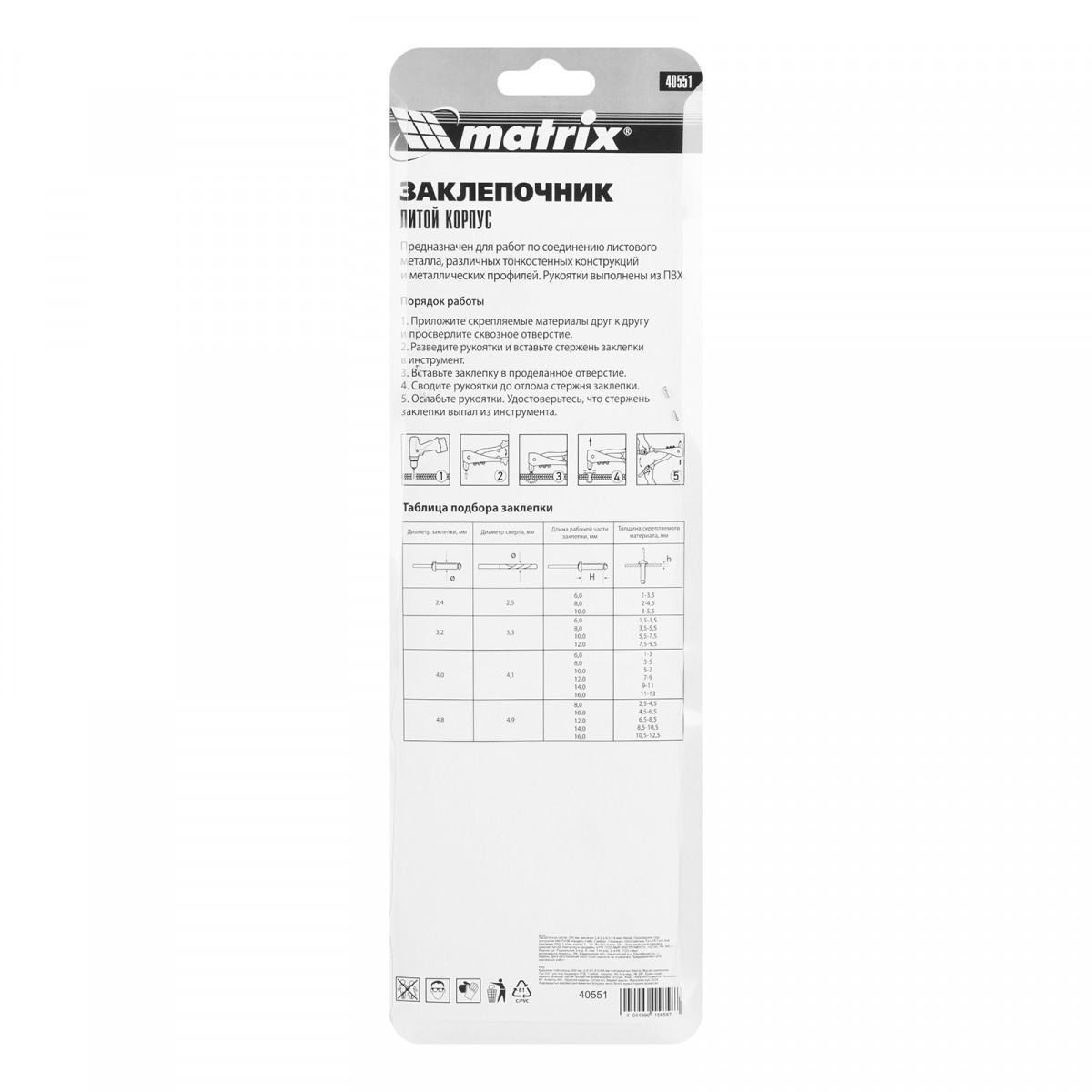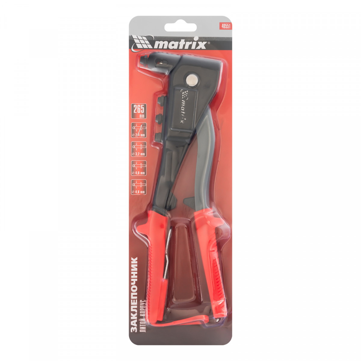 Заклепочник литой, 260 мм, заклепки 2.4-3.2-4.0-4.8 мм Matrix