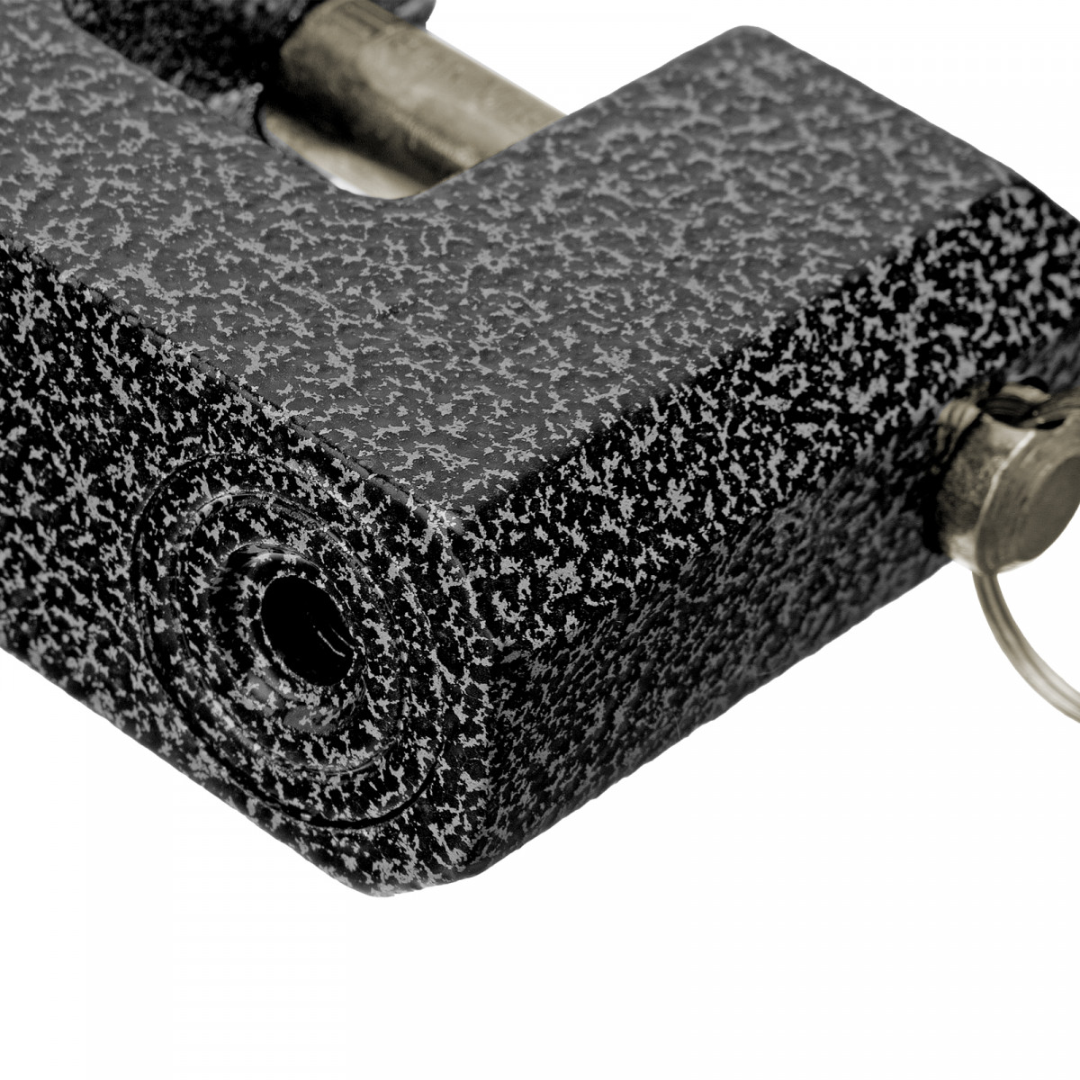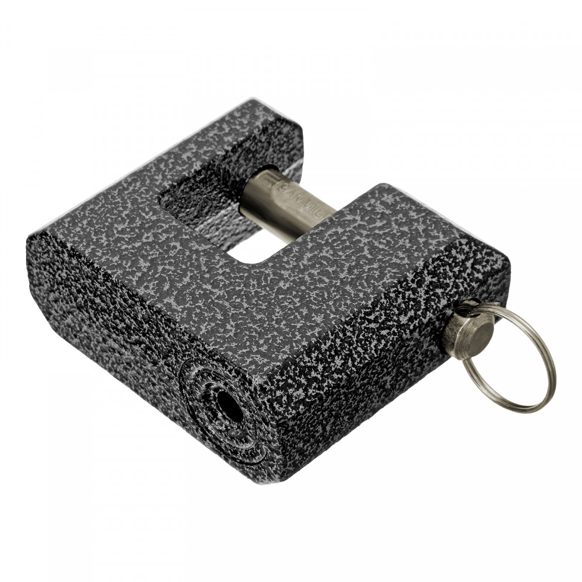 - Высокий показатель прочности — корпус изготовлен из чугуна, а дужка — из стали.