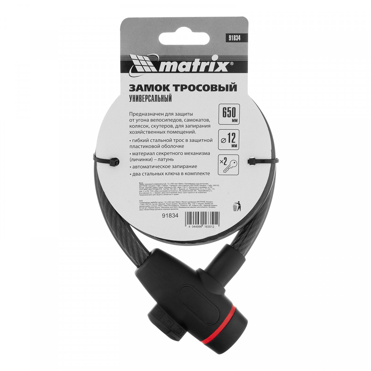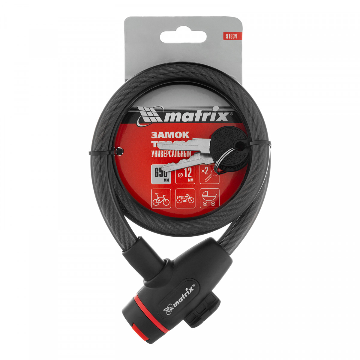 Замок тросовый универсальный, 12 х 650 мм Matrix