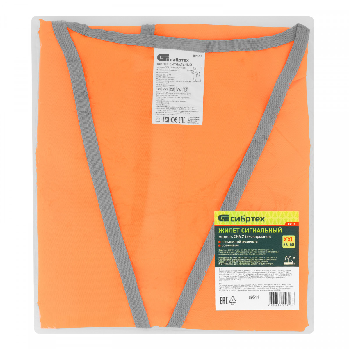 Жилет сигнальный, оранжевый, размер XXL Сибртех