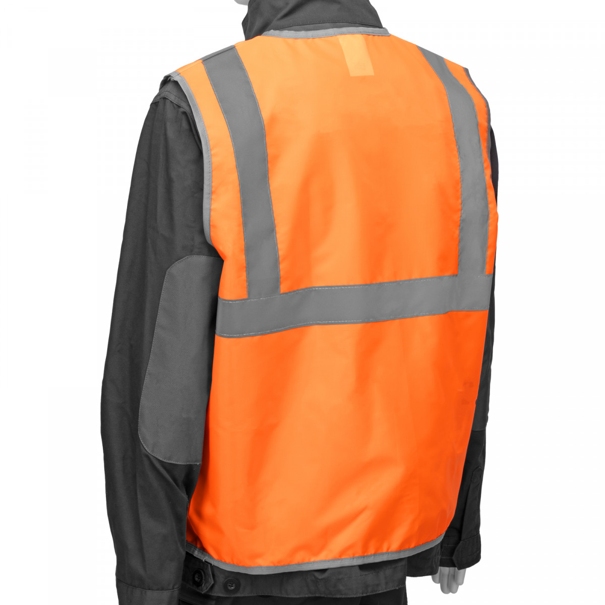 Оранжевый сигнальный жилет Сибртех 89514 размера XXL (56-58) обеспечивает безопасность пользователя, а также защищает одежду от грязи. Его можно носить в любое время суток, т.к. яркий оранжевый цвет хорошо видно днем, а светоотражающие полосы — ночью и в условиях плохой видимости. Жилет подходит для эксплуатации в любую погоду и будет полезен строителю, охраннику, работнику коммунальных или дорожных служб.