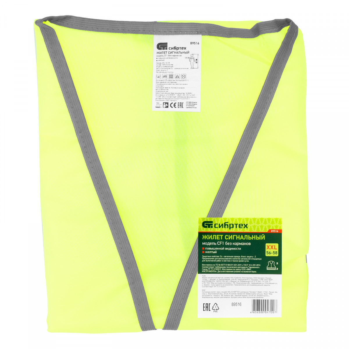 Жилет сигнальный, желтый, размер XXL Сибртех