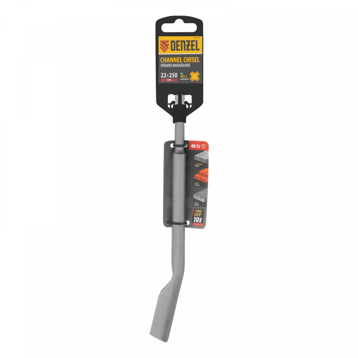 Канальное зубило Denzel 703133 размером 14 x 22 x 250 мм, из стали 40Cr, с хвостовиком SDS-plus — оснастка для перфоратора. Предназначено для штробления канавок и пазов в твердых материалах, таких как камень, бетон, кирпич. Пригодится на строительной площадке.
